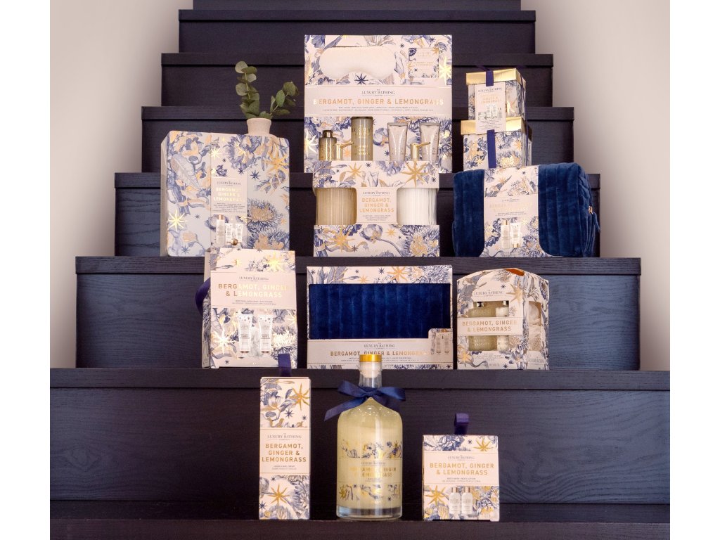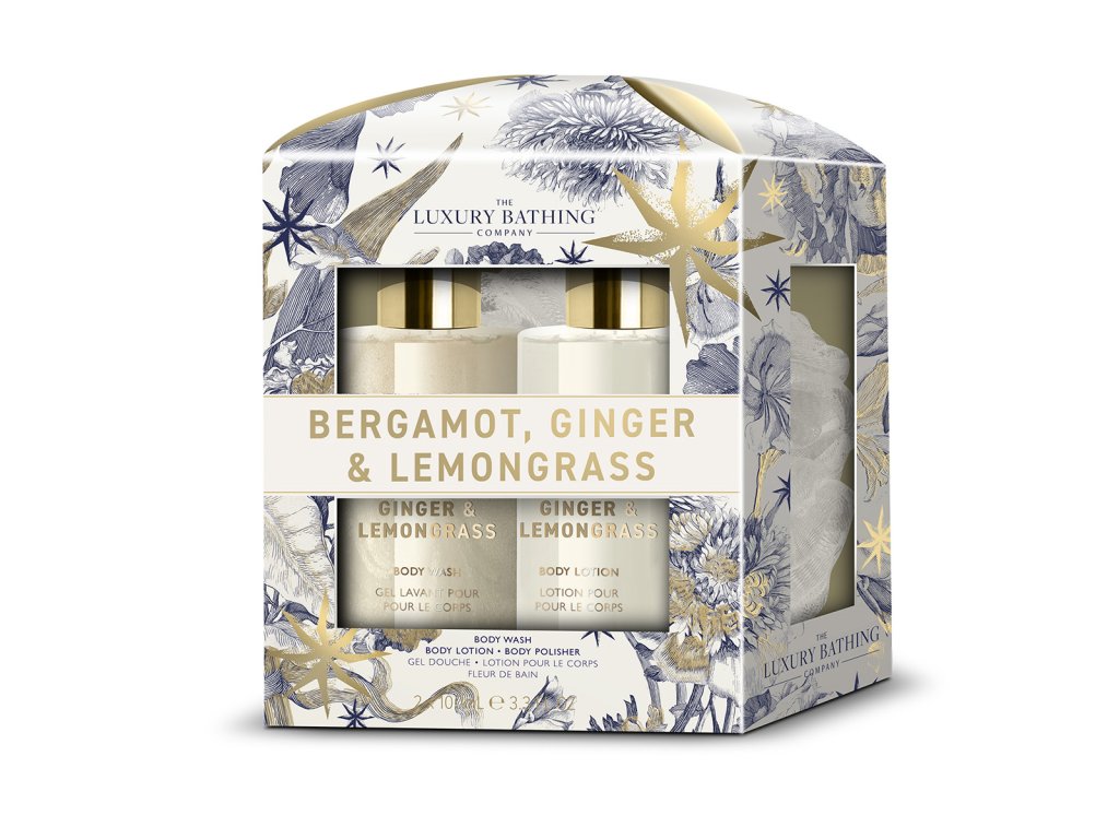 Elegantní kolekce Bergamot, Zázvor & Lemongrass propojuje vytříbený design s jemnými svátečními detaily ve zlatých, tmavě modrých a krémových tónech. Pečující produkty doprovází luxusní a intenzivní vůně se svěžími tóny bergamotu, citronové trávy a zázvoru doplněná tóny květin, ambry a pižma. Kolekce je určena pro ženy i muže 40+, kteří ocení kvalitu a luxus.