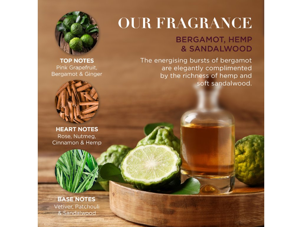 - s jedinečnou vůní konopí, santalu a bergamotu