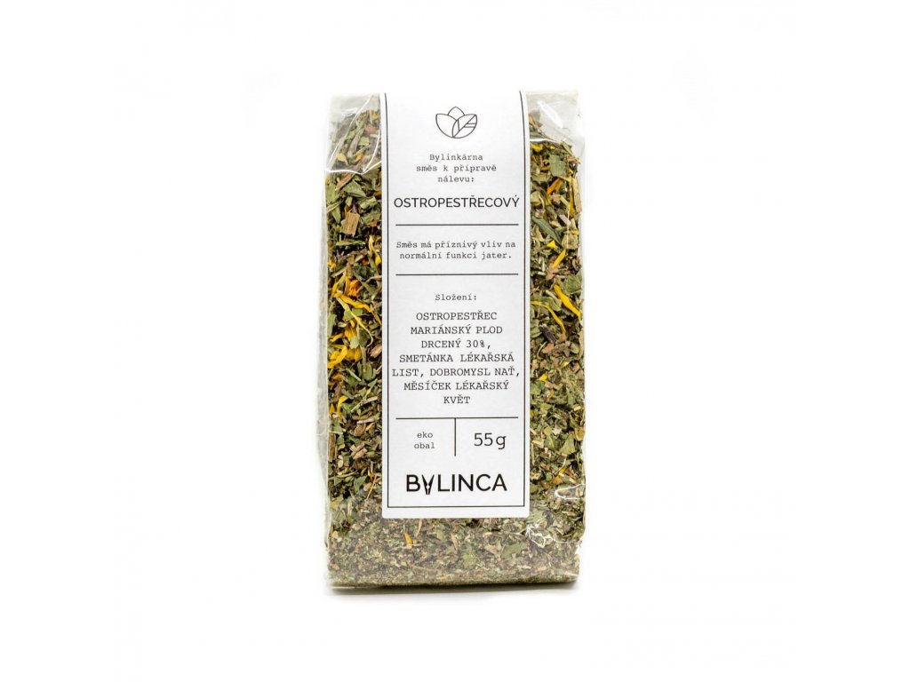 Složení: Ostropestřec mariánský plod drcený 30%, Smetánka lékařská list, Dobromysl nať, Měsíček lékařský květ