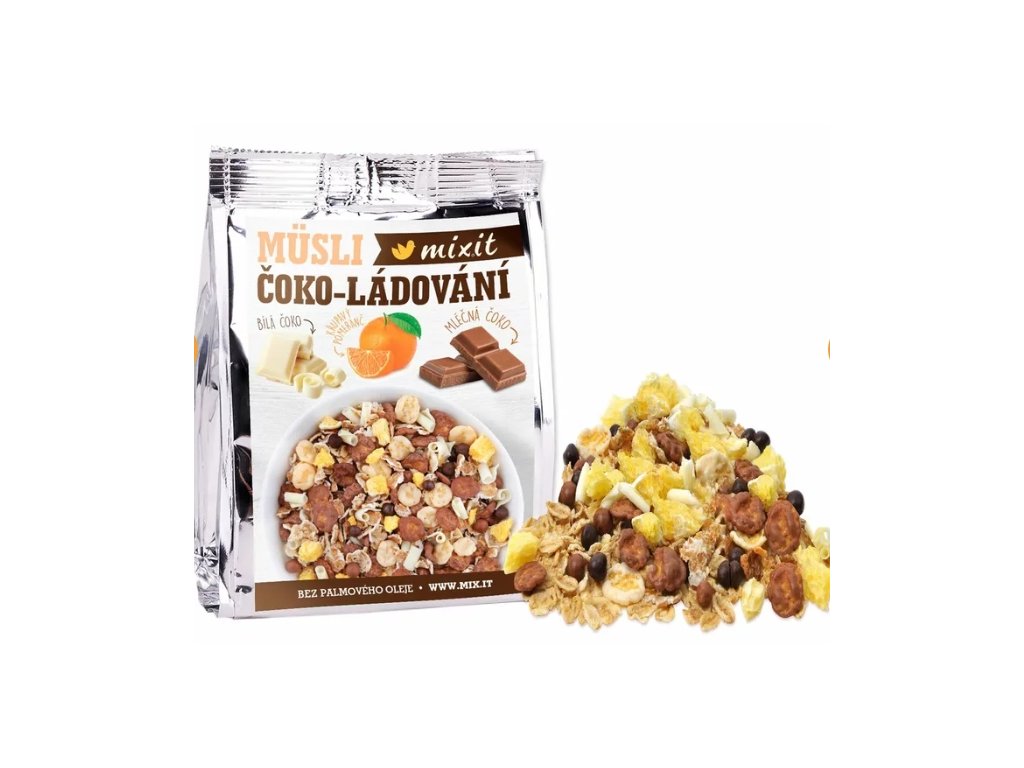 Nejprodávanější čokoládové müsli od Mixit je nově v pytlíku pro všechny výlety i dobrodružství všedního dne. Receptura je nově bez kávových zrn v čokoládě – tradičně křupe a opět nešetří na pořádných hrstech čokolády.