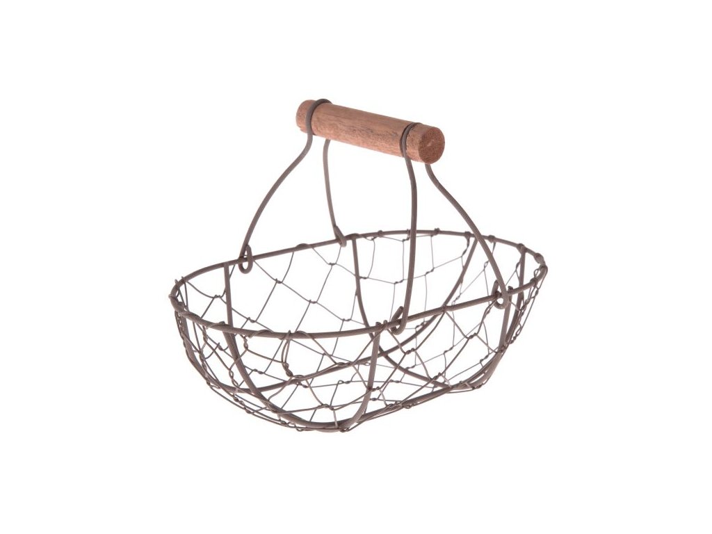 Stylový drátěný koš v hnědé barvě s dřevěným uchem je praktickým i dekorativním doplňkem do domácnosti. Koš je vhodný pro uložení drobností, pečiva, dekorací nebo jako dárkový koš.