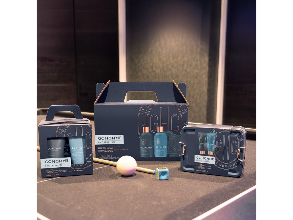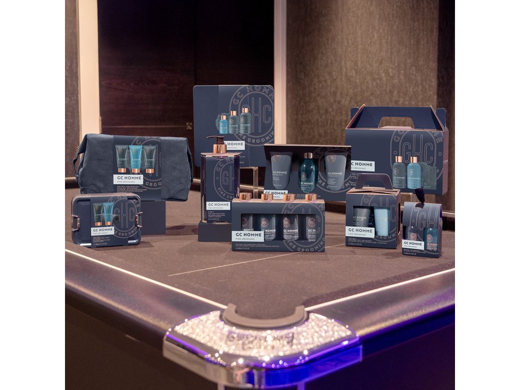 GC Homme představuje dokonalou kolekci péče pro muže, která se pyšní elegantní půlnoční modrou barvou s měděnými, zlatými prvky, dodávajícími celé řadě odvážný a luxusní vzhled. Tato kolekce je pečlivě navržena tak, aby splňovala specifické potřeby mužů, zahrnující péči o tělo, mytí vlasů a vousů, tělovou hygienu a relaxaci svalů. GC Homme oslovuje širokou škálu mužů ve věku 30+. Vůně této kolekce je výrazně mužná a kořeněná, s vrchními tóny mandarinky, bergamotu a rozmarýnu, které se prolínají s exotickým srdcem černého pepře, jasmínu a skořice, zakončené bohatým základem mošusu a jantaru.