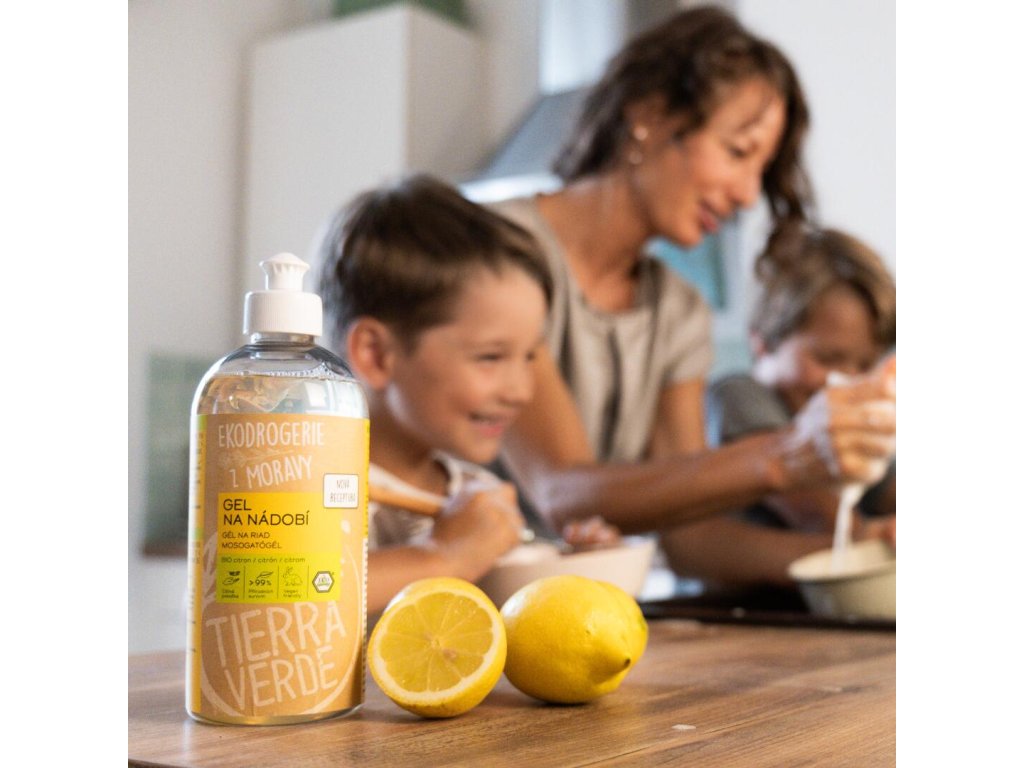 - Chcete přírodní prostředek na nádobí? Obsahuje více než 99 % přírodních surovin. Účinnost mu dodávají přírodní tenzidy odvozené z kokosového oleje. A příjemně voní po BIO citronové silici.