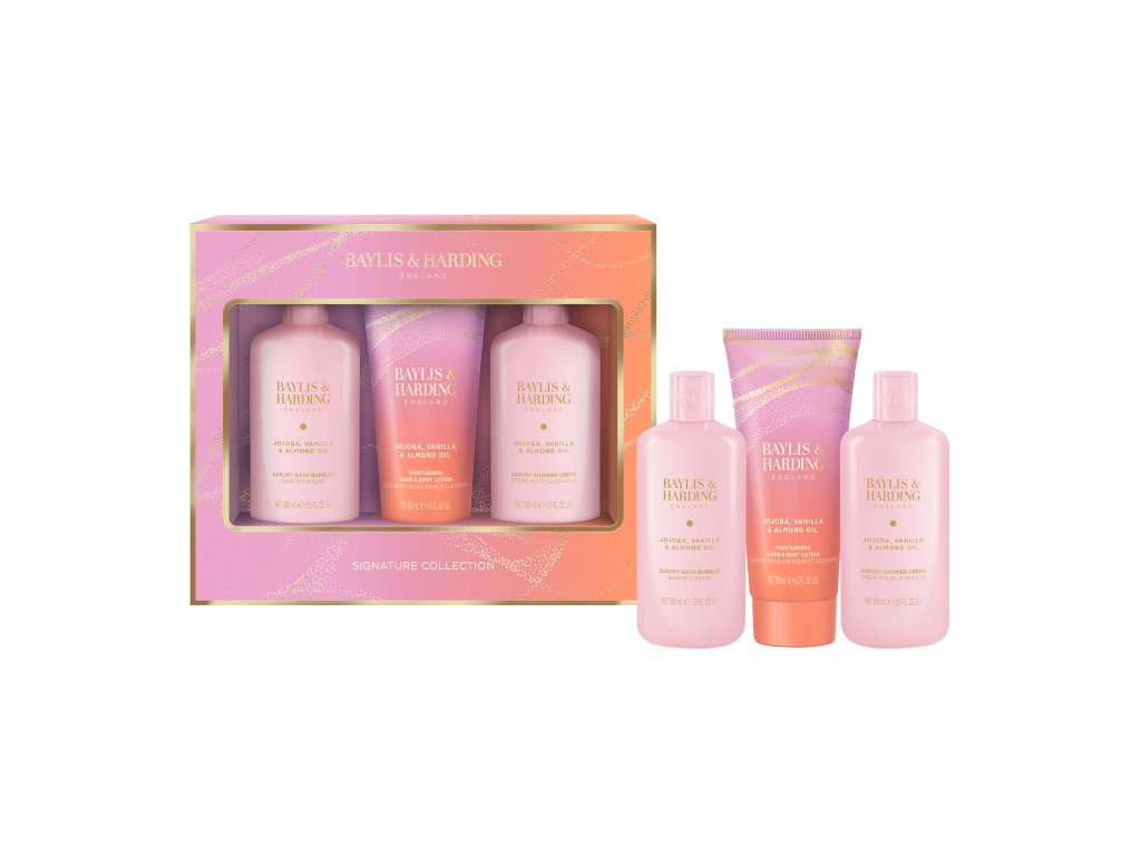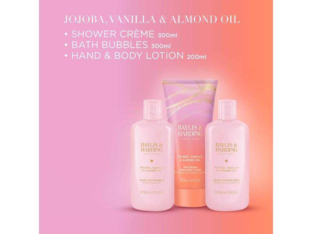 Jojoba, Vanilla & Almond Oil - sada s péčí o tělo, 3 ks praktická dárková sada tělové péče s vůní jojoby, vanilky a mandlového oleje
