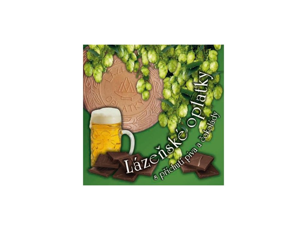 Lázeňské oplatky s příchutí piva a čokolády – oplatky s plátem čokolády a jemně nahořklou chutí piva 175 g