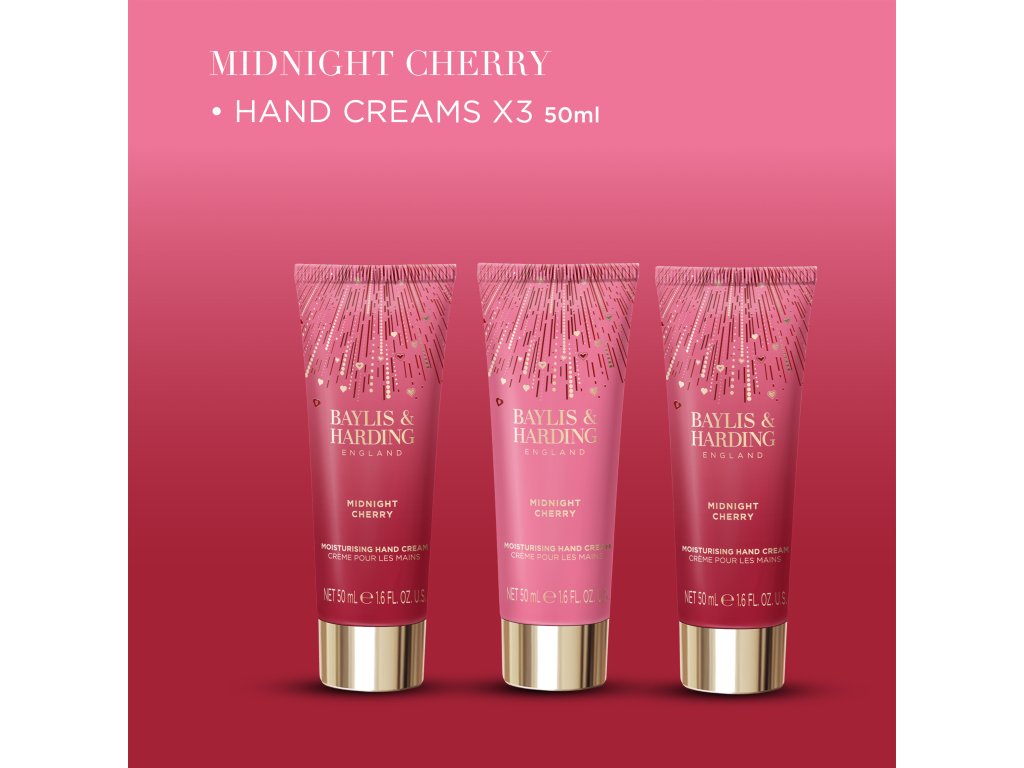 Midnight Cherry - sada krémů na ruce, 3 ks dárková sada 3 krémů na ruce se šťavnatou vůní třešní, mandlí a likéru