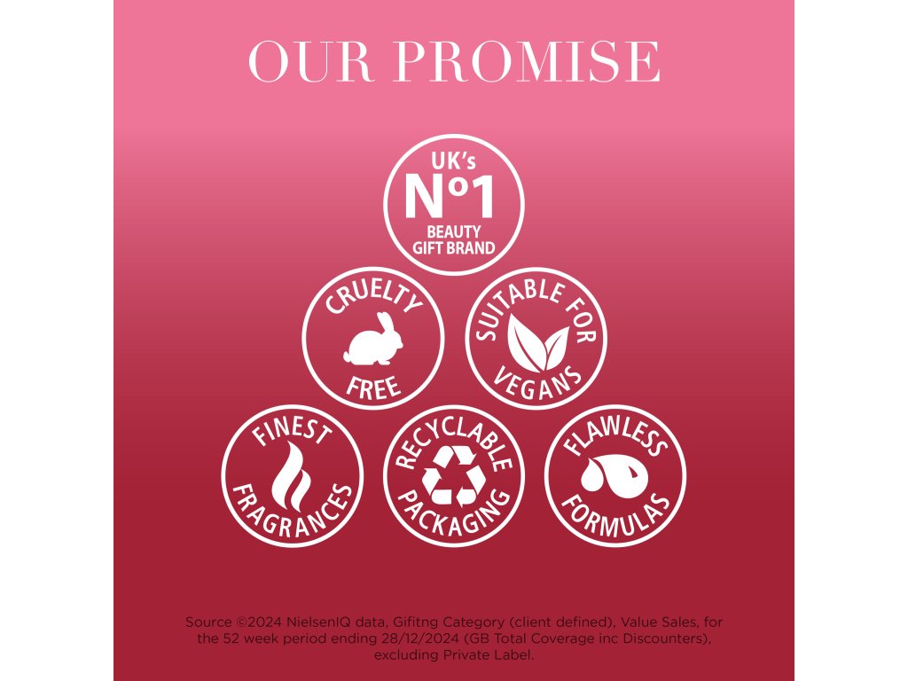 Kolekce Midnight Cherry s vůní sladkokyselé třešně, jemných mandlí a kapky likéru v sobě spojuje sváteční atmosféru a hřejivé kouzlo zimních večerů. Výrazný design v tónech rudé a růžové se zlatými detaily dodává každému produktu slavnostní nádech – ideální pro chvíle rozmazlování nebo jako luxusní dárek pod stromečkem.