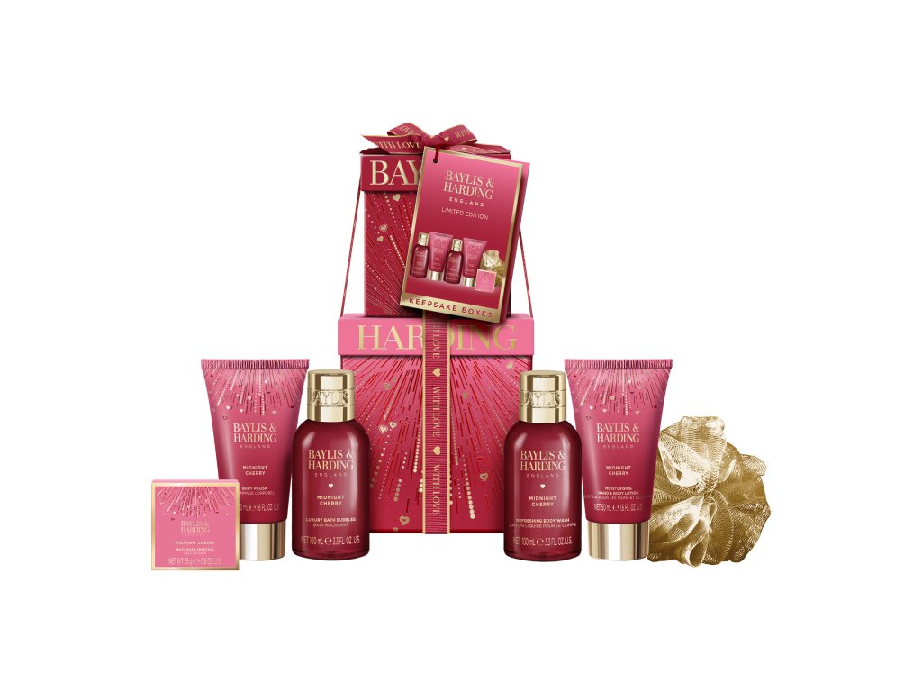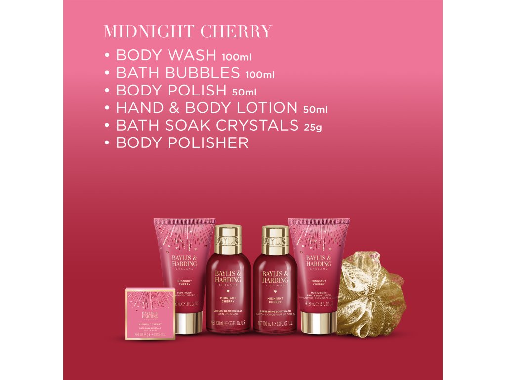 Midnight Cherry - sada s péčí o tělo, 6 ks sada produktů tělové péče s vůní třešní, mandlí a likéru v luxusní dárkové krabičce