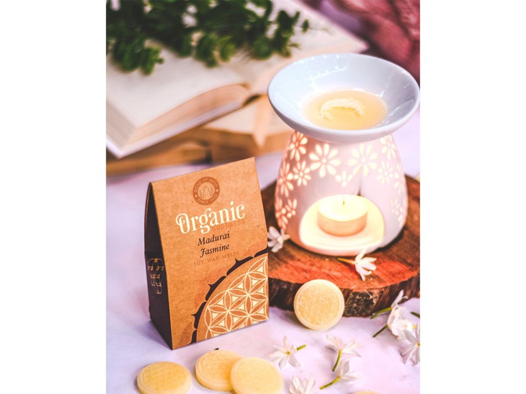 Vonný sojový vosk v mincích řady Organic Goodness s květinovou sladce omamnou vůní jasmínu. Vůně, která je symbolem lásky, krásy a smyslnosti a která vytvoří relaxační atmosféru, podnítí láskyplné a intimní chvíle. Vyrobeno ze sojového vosku, provoněného esenciálními silicemi.