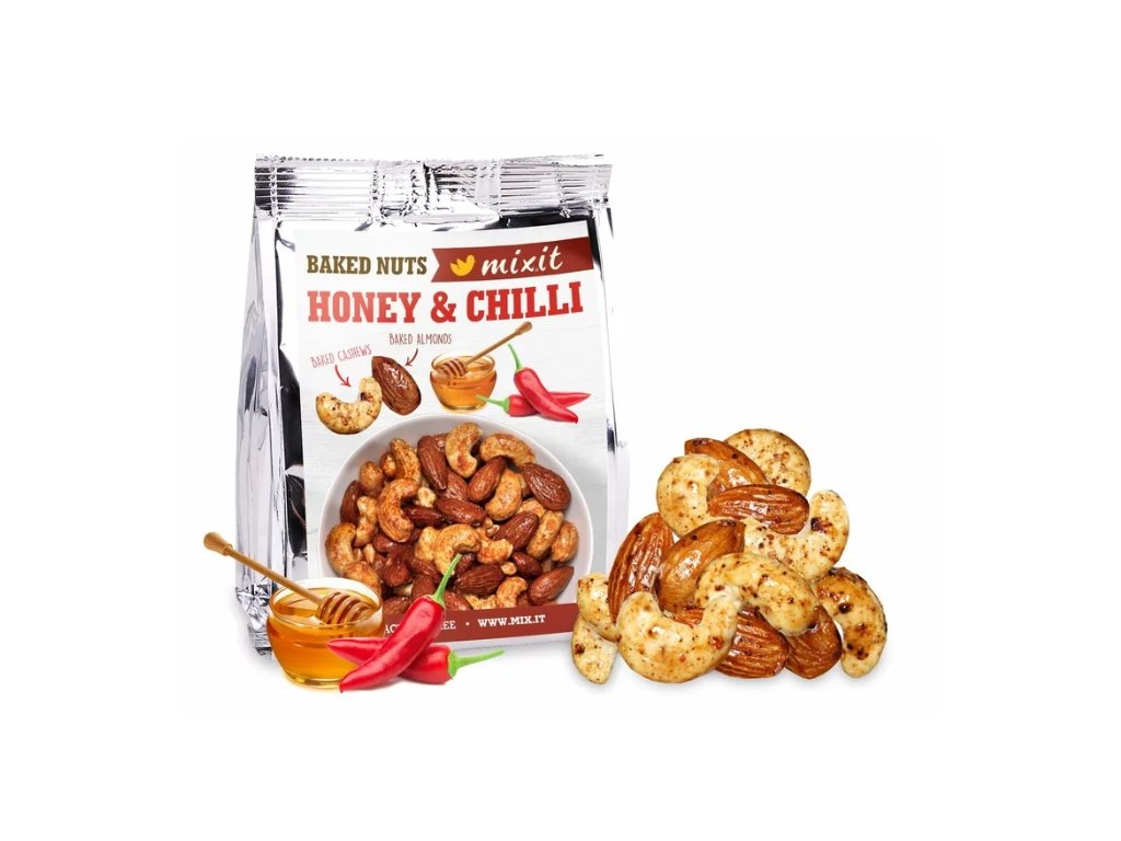 Nově i v praktickém balení do kapsy! Tak dlouho se chodí s oříšky kolem pece, až se něco upeče! Kešu a mandle spojily síly s medem, chilli a himálajskou hrubozrnnou solí a vznikla neopakovatelná dobrota. Zkuste první slaný oříškový mix z našich pecí. A pozor, jsou tak dobré, že to jedním pytlíkem neskončí. :-)