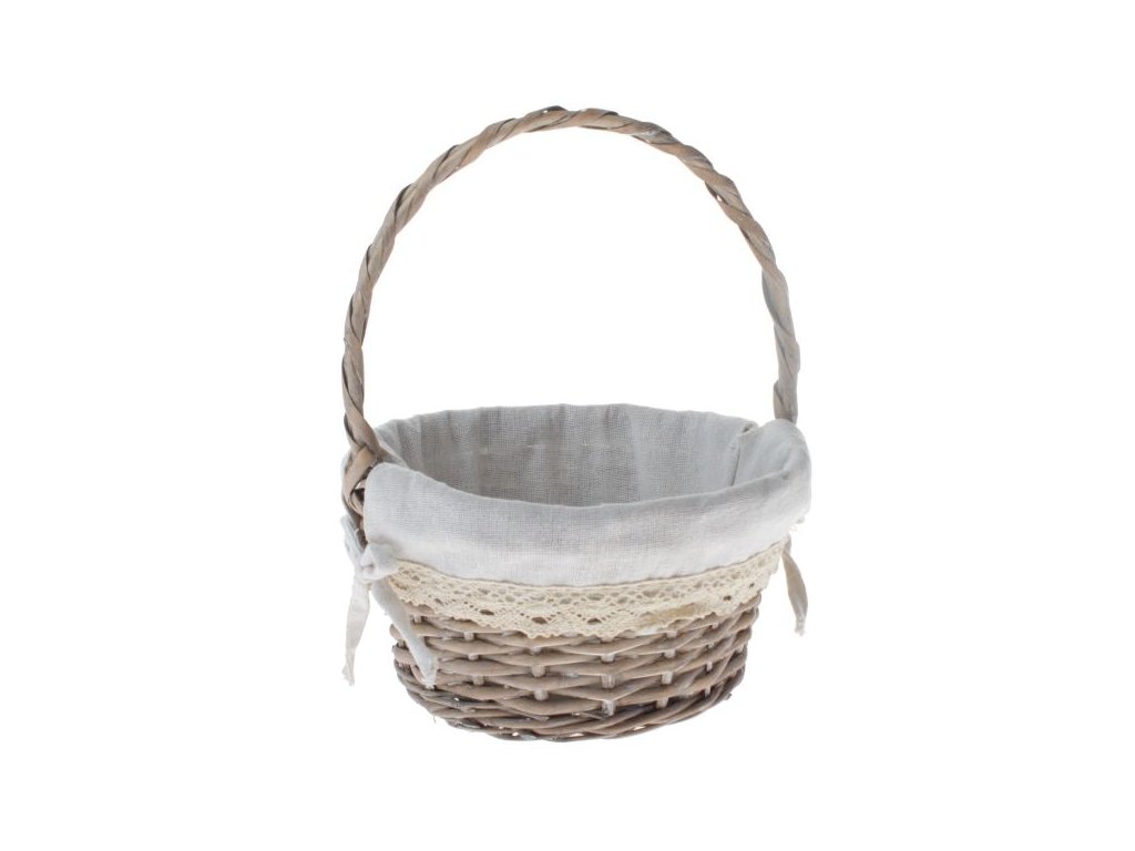 Stylový proutěný koš v šedé barvě je praktickým i dekorativním doplňkem do domácnosti. Vnitřní látková výstelka doplněná jemnou krajkou dodává koši elegantní a romantický vzhled. Koš je vhodný pro uložení drobností, pečiva, dekorací nebo jako stylový dárkový koš.