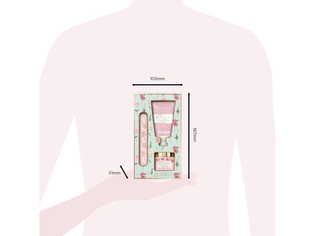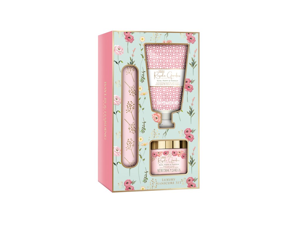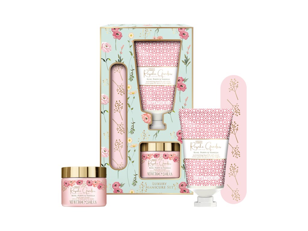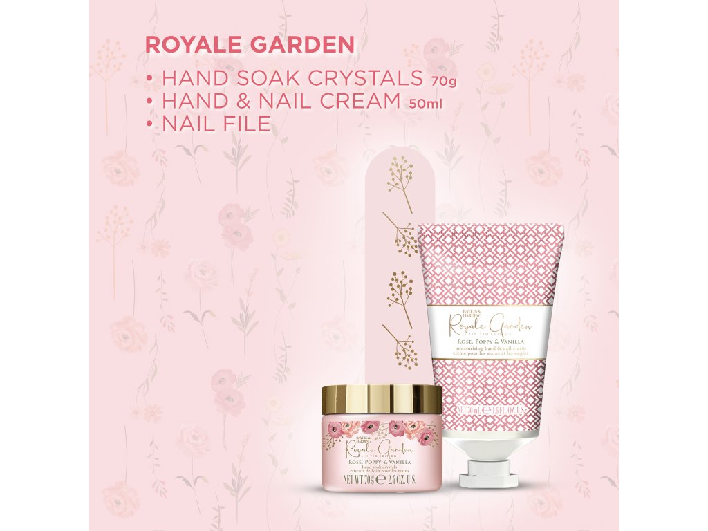 Toužíte po upravených nehtech a hebké, hydratované pokožce rukou? Dopřejte si tu nejlepší péči o ruce s Baylis & Harding! Sůl do relaxační lázně dopřeje pokožce rukou hluboké uvolnění, zatímco krém na ruce a nehty intenzivně hydratuje a vyživuje pokožku s vůní růží, máku a vanilky. Nechybí ani praktický pilník na nehty, který Vám pomůže udržovat nehty perfektně upravené.