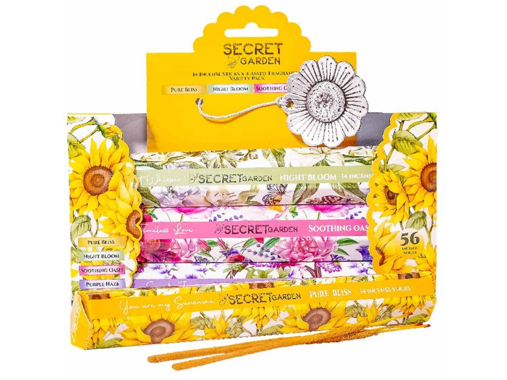 Dárková sada obsahuje 4 balení vonných tyčinek a také stojánek ve tvaru květu.