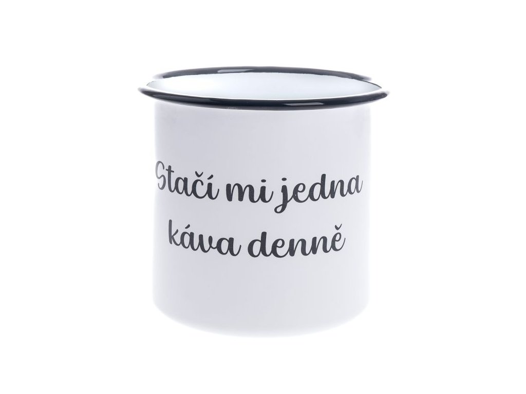 Smaltový dekorační hrnek "Stačí mi jedna káva denně", 1000ml