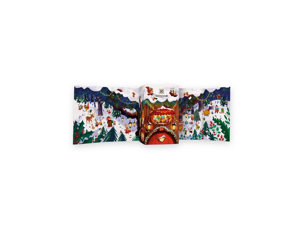 Náš SONNENTOR Adventní kalendář® vás letos ohromí svým novým, světáckým kabátkem. Každý adventní den se můžete těšit nejen na novou básničku na čajovém přebalu, ale také na speciální online obsah: od videoreceptů přes digitální hry až po soutěže a odměny. Stačí jen naskenovat QR kód na čajových přebalech mobilním telefonem. Krabička má tentokrát i o dvě klopy víc po jejím rozložení objevíte ještě víc okouzlujících vánočních ilustrací.