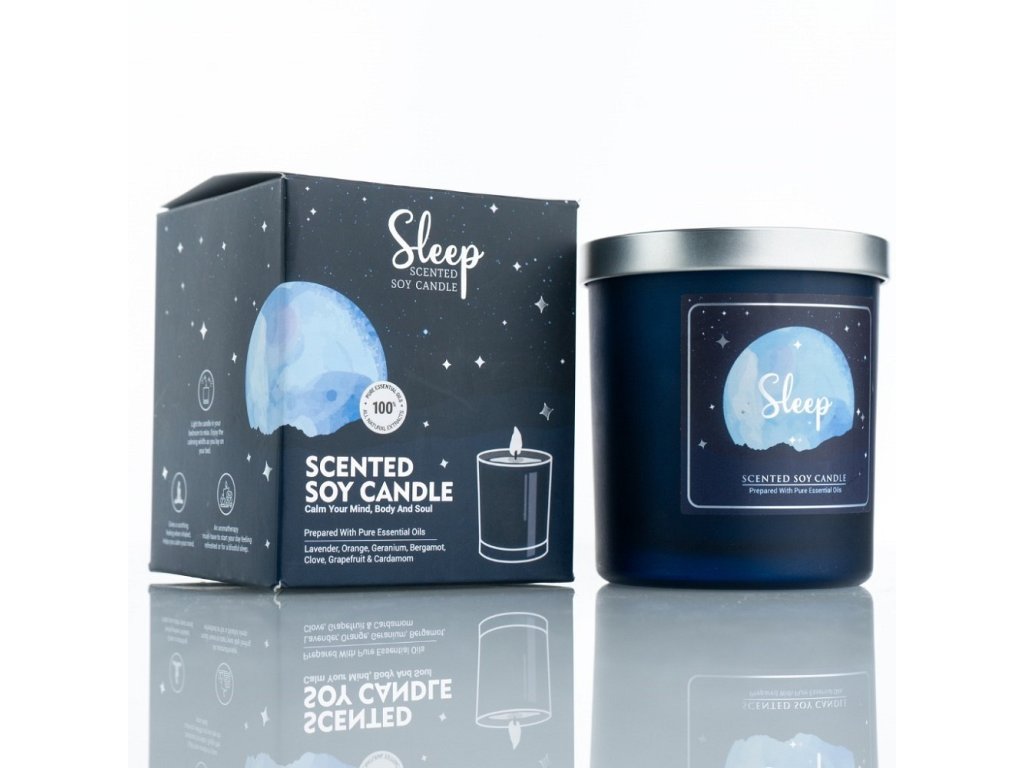 Zklidněte svou mysl, tělo i duši s vonnou sójovou svíčkou Sleep.