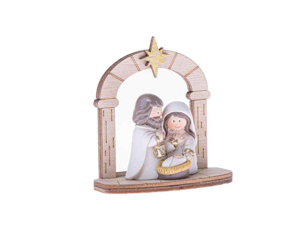 Svatá rodina - Betlém - dekoarce (polyresin, dřevo) 7,7cm