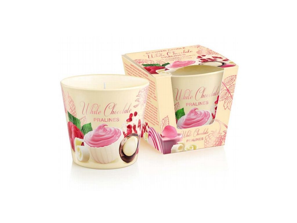 Svíčka v konickém skle 115g Chocolate Paradise - White Chocolate Pralines