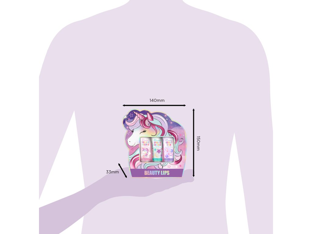Pro kouzelný glam, ať už na cestě do školy nebo na setkání s přáteli, obsahuje tato dárková sada 3 lesky na rty s vanilkovou příchutí. Zábava, jednorožci, vůně cukrovinek a pocit štěstí - to je sada lesků na rty, o které sní každá dívka! Obalí rty hedvábně jemnou texturou, která zanechá vláčné a vyživené rty, navíc s třpytivým efektem.