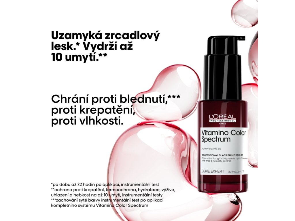 Vitamino Color Spectrum Professional bezoplachové sérum pro velmi zářivý lesk od L’Oréal Professionnel, obohacené o 5% Alpha-silane.