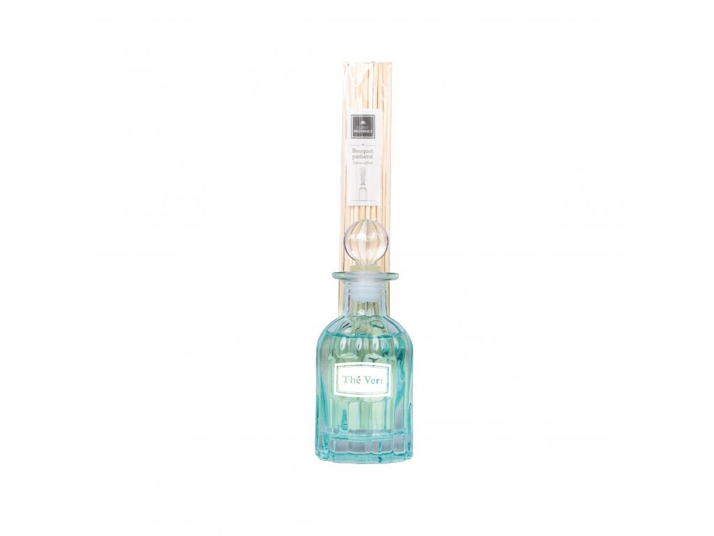 Luxusní difuzér s osvěžující vůní zeleného čaje. S ratanovými tyčinkami.